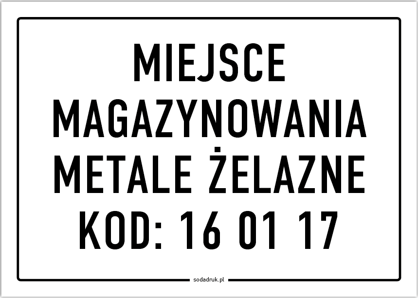 Miejsce magazynowania metale żelazne, kod odpadu: 16 01 17 – tabliczka