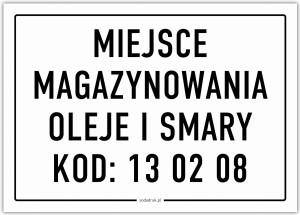 Miejsce magazynowania oleje i smary, kod odpadu: 13 02 08 – tabliczka