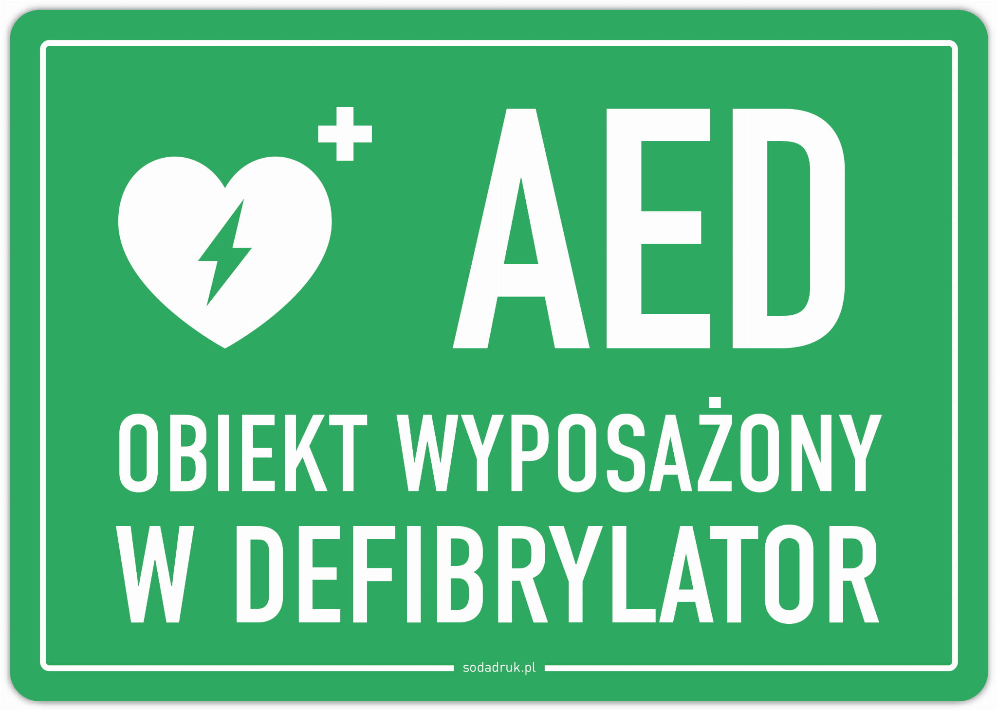 Obiekt wyposażony w defibrylator – naklejka zielona