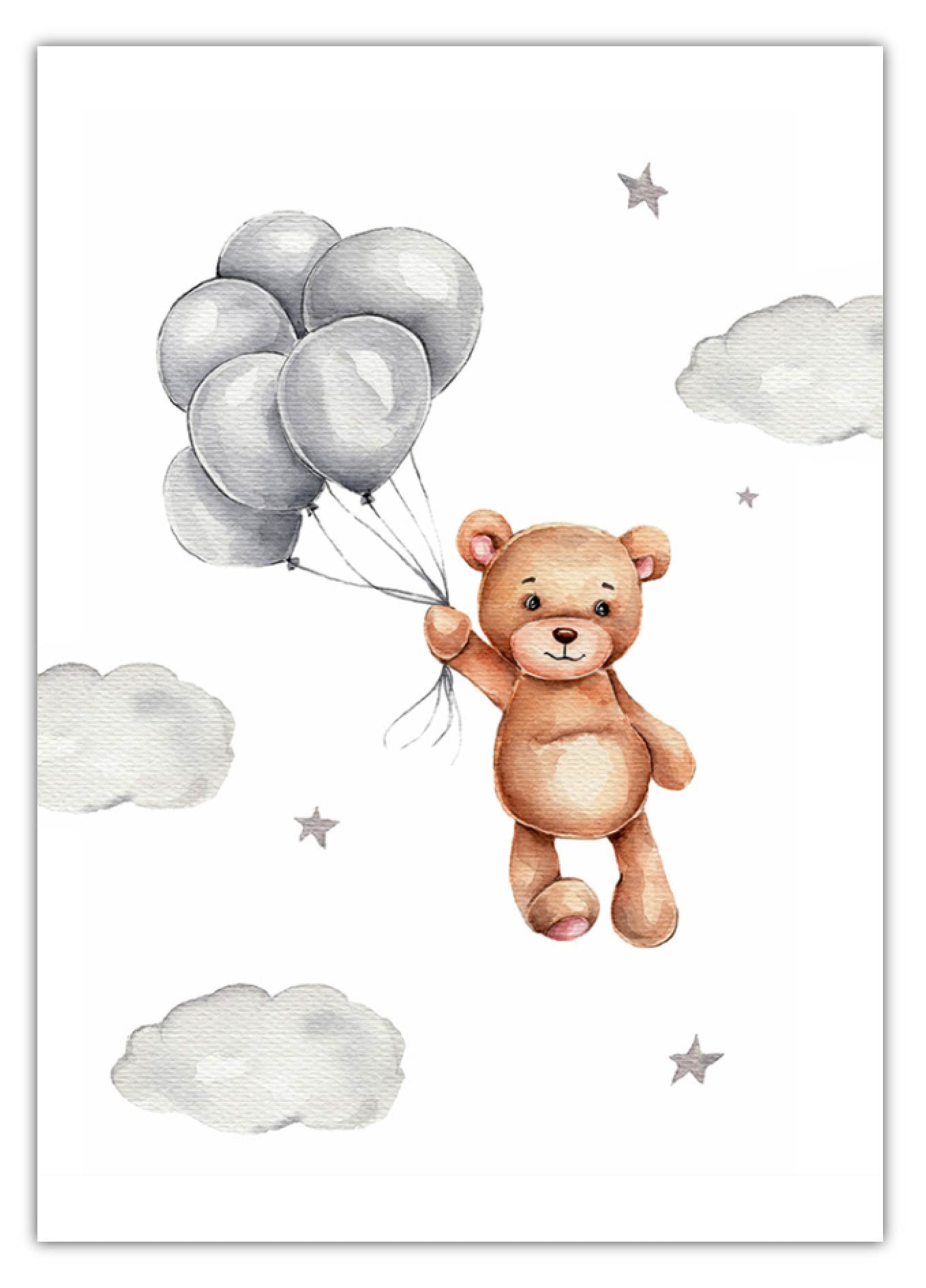 Plakat Miś dla dzieci to uroczy i stylowy dodatek do pokoju dziecięcego. Motyw misia, symbolizujący ciepło i bezpieczeństwo, doskonale wpisuje się w atmosferę przytulnego dziecięcego wnętrza. Plakat jest dostępny w kilku wymiarach.