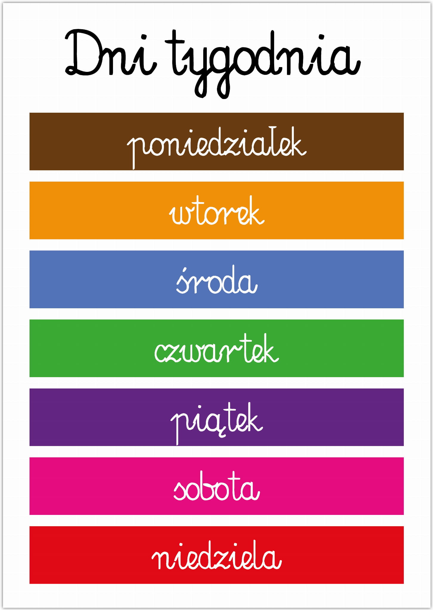 Plakat A3 montessori - dni tygodnia