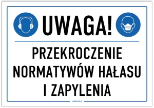 Tabliczka „Przekroczenie normatywów hałasu i zapylenia” to element oznakowania BHP informujący o występowaniu przekroczeń dopuszczalnych norm środowiskowych w miejscu pracy. Znak zwiększa świadomość zagrożeń i przypomina o konieczności stosowania odpowiednich środków ochrony indywidualnej, takich jak ochronniki słuchu czy maski przeciwpyłowe.